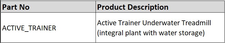 The ACTIVE Hydrotherapy Trainer includes a treadmill chamber, entrance foyer and integrated water management equipment.